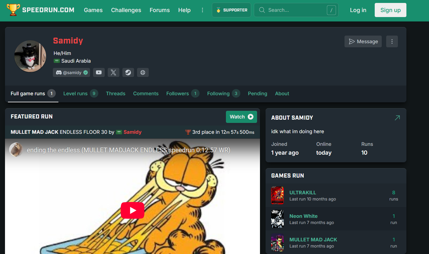 I speedrun games sometimes! Below is my speedrun.com profile.